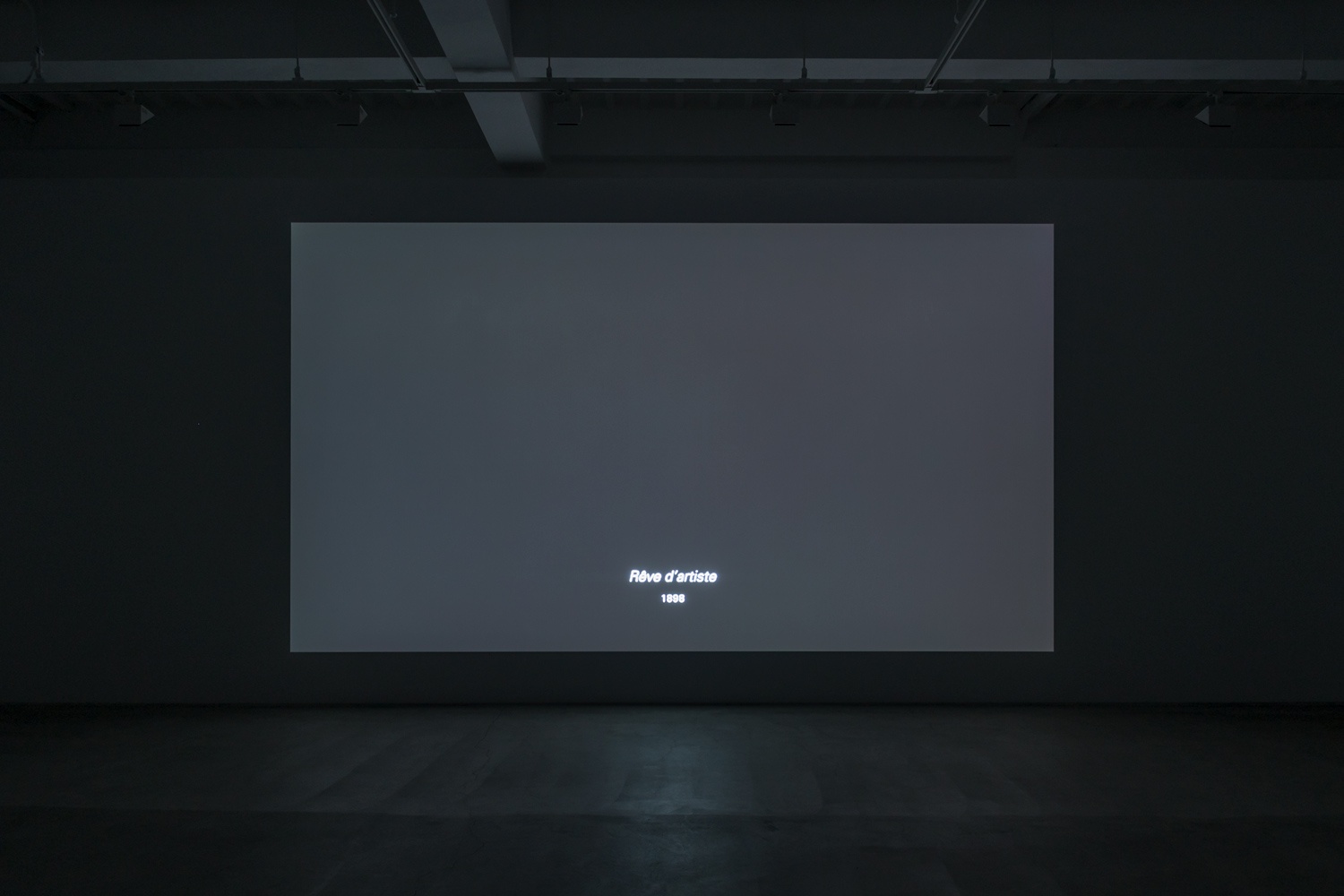 世界中の失われた映画を題材としたシリーズ Lost Filmsの第5作。壁に投影された黒い背景に、古いフランス映画のタイトルと製作年が淡々と現れては消え、タイトルを朗読する女性の声が会場に響きます。本作を構成する映画タイトルの大部分はジョルジュ・メリエス監督作品です。メリエスは「出現」や「消失」を多用し、夢や幻想、魔術などを扱ったファンタジー作品を多く残してきました。一時は大きな成功を収めたメリエスでしたが、第一次世界大戦開戦を機に映画製作を継続できなくなり、次第に表舞台から姿を消していきます。戦時中、メリエスの映画フィルムの多くは陸軍に没収され、セルロイドと銀の再利用に回されました。1923年、自らのスタジオと劇場を失ったメリエスは自暴自棄になり、手元に残っていたネガフィルムに自ら火を放ちました。