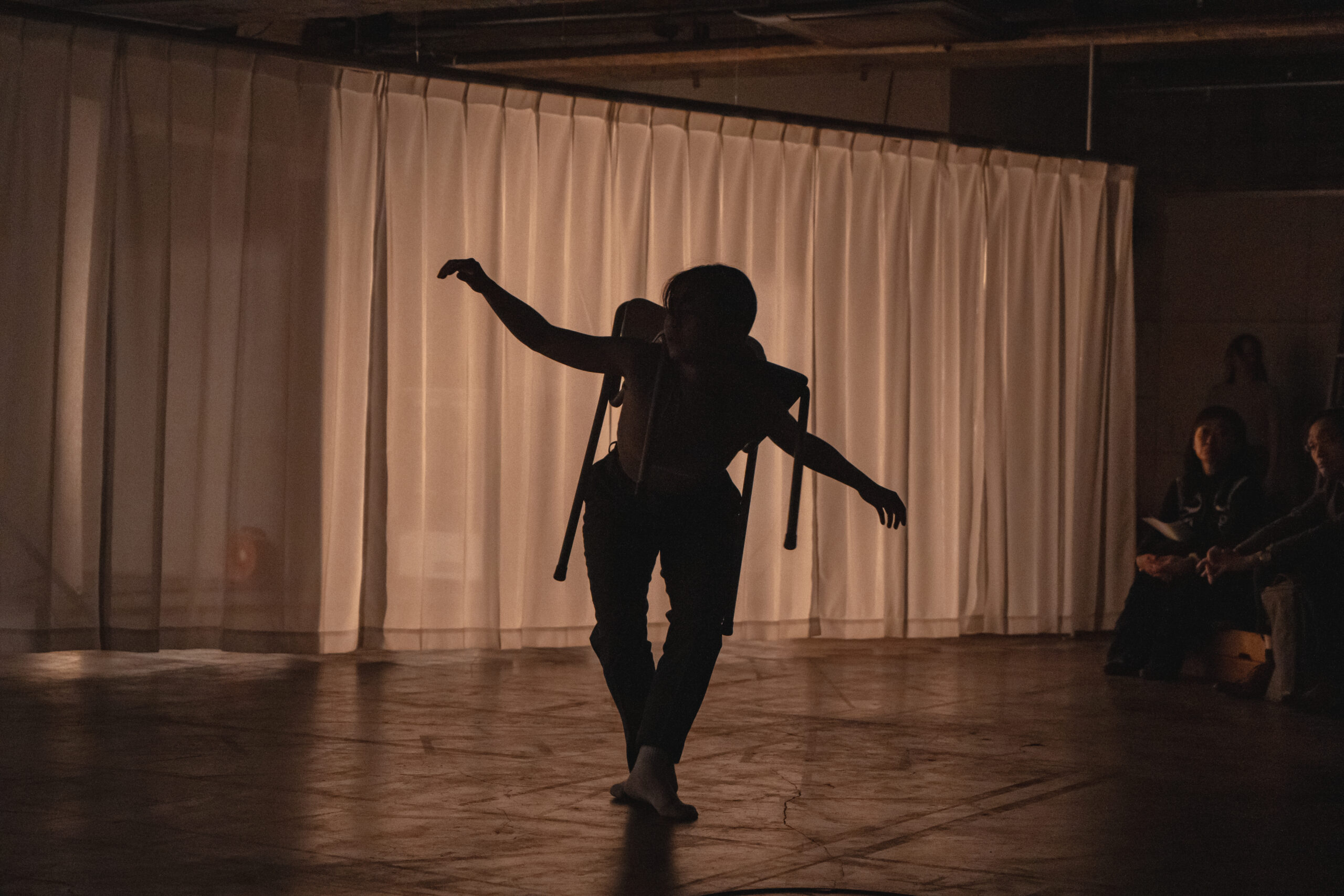 本作は日本と台湾の出身である橋本真那と朱柔欣が台湾で過ごした記憶をベースとして、日本でも多くの議論がなされてきた「台湾有事は日本有事」について身体的交流を通じて再考する試みである。前年Dance Base Yokohamaでのレジデンス及びトライアウト、また今回急な坂スタジオでのレジデンスを経て12月14日、15日に北千住BUoYにて単独公演を実施。コンテンポラリーダンスをコンセプトの中心としながら映像、美術、音楽の融合によって、国境と領域を越えたインターメディアアートを実現する。様々な情報が行き交い国際情勢が一層複雑化する現代において、当事者と非当事者の境界を生きる私たちにできることはなにか。良き隣人と呼ばれる隣国・台湾を通じて自国を見つめ直し、本公演を通じて共に考える時間を目指す。結果として日本と台湾、また日常と非日常の世界が交わり合う、あるいはその境を往来するような体験の創造となった。それは非常に繊細で静寂なひと時であり、終演後には好評と再演希望の声を多数いただくことができた。
