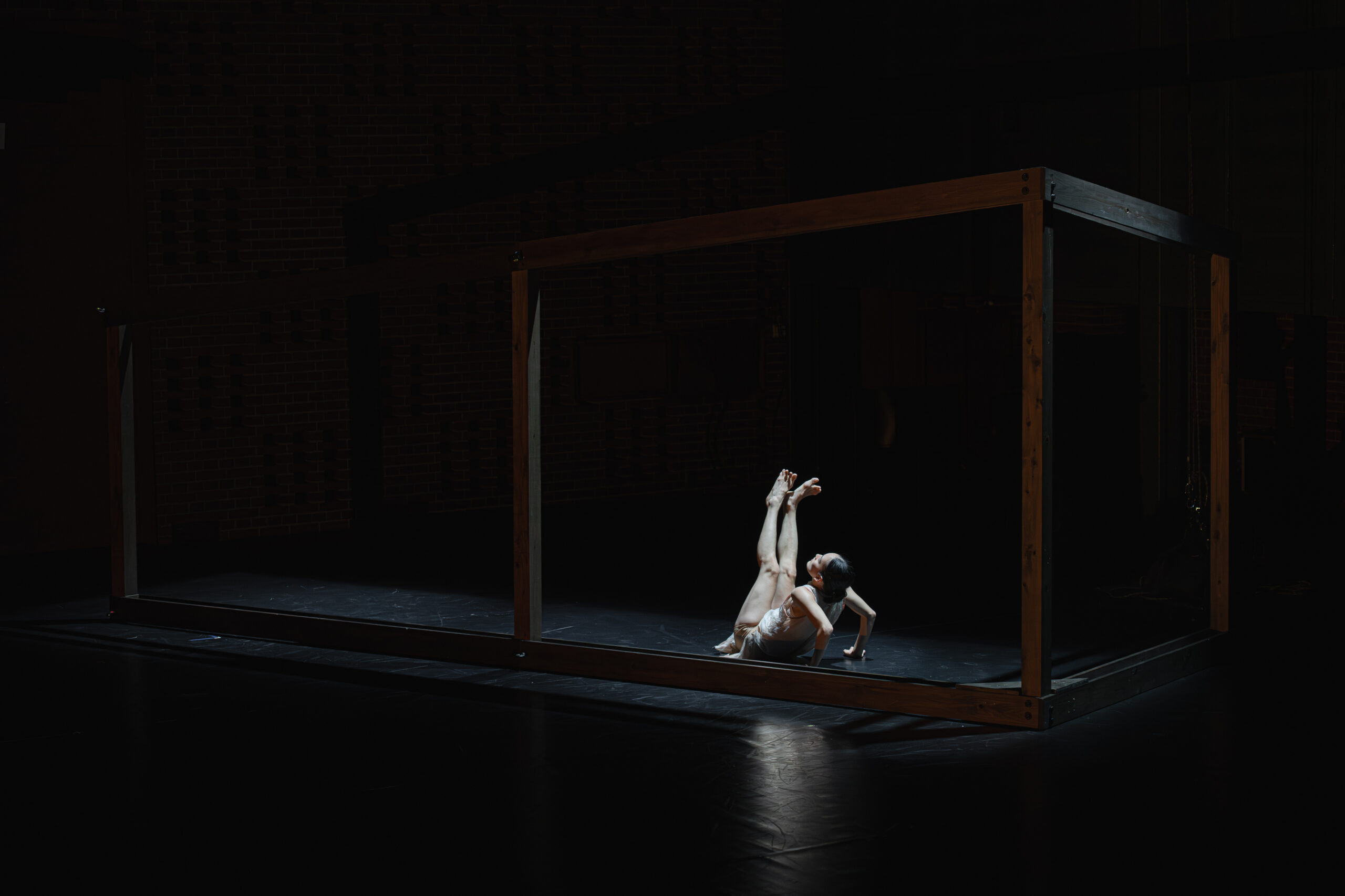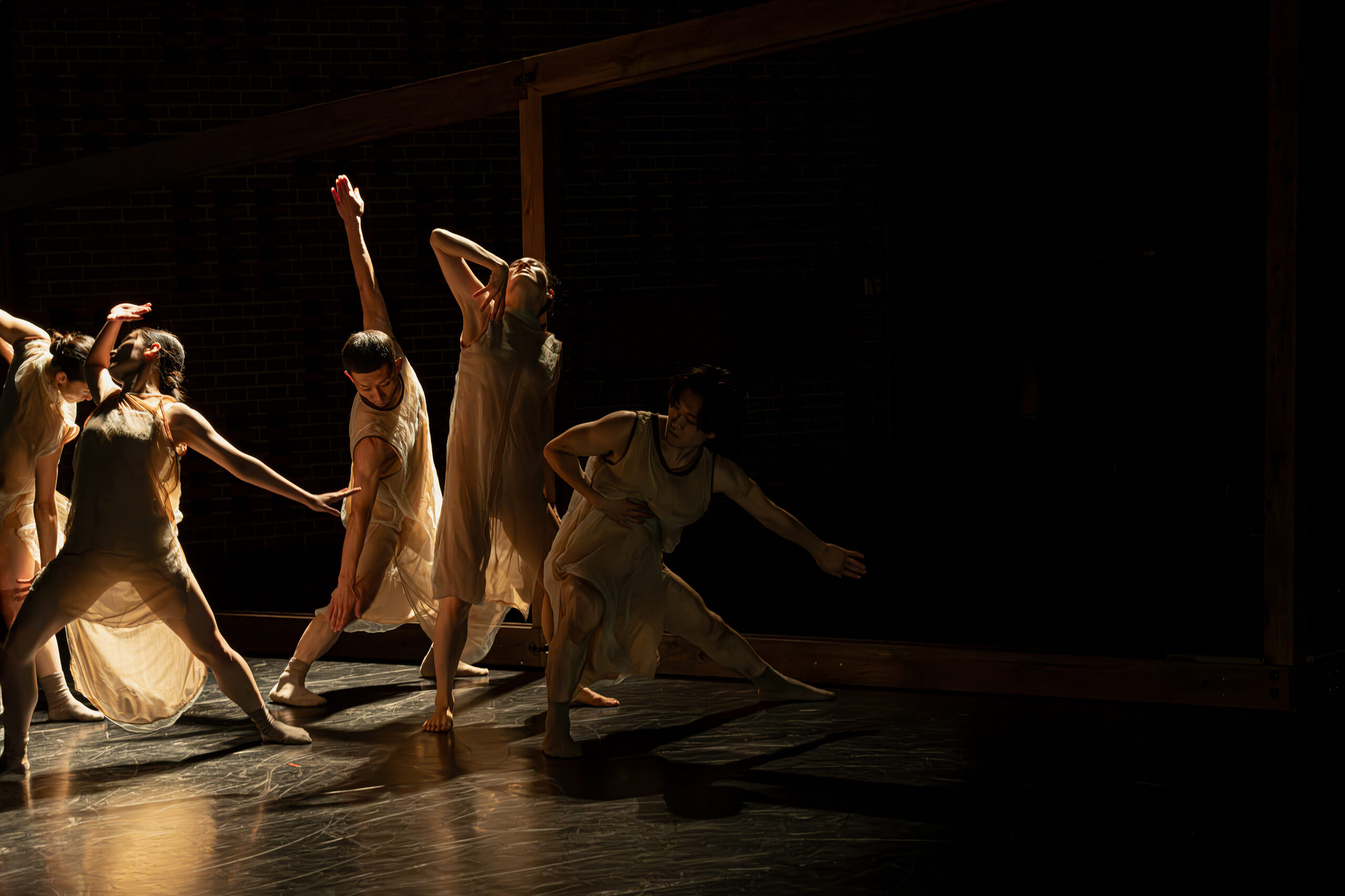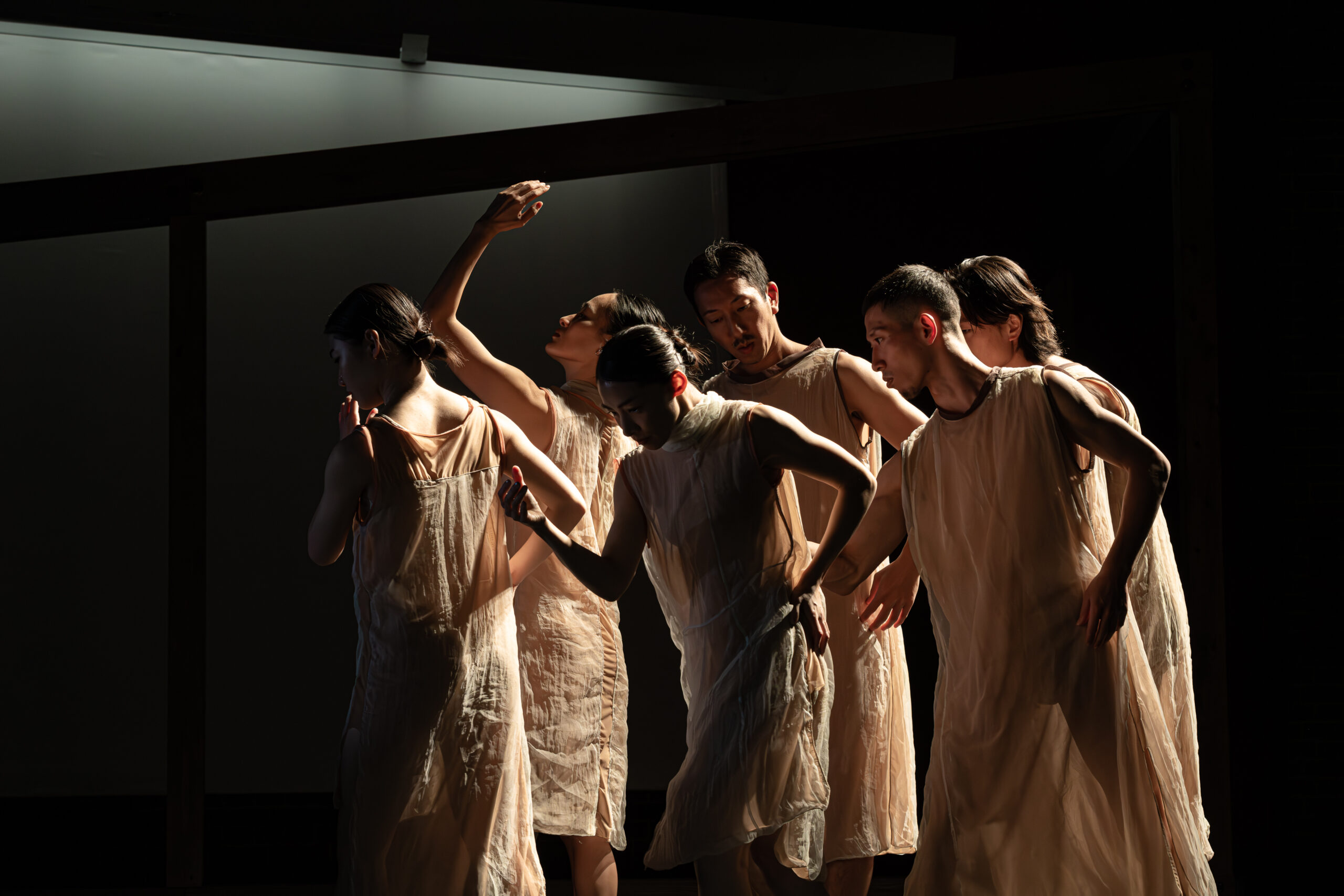 「縁側」をテーマに身体表現と建築的アプローチを融合。舞台セットとダンス空間が有機的に連動することで、「内と外」や「個と集団」といった関係性から生まれる余白によって、「縁側」のもつ「あいまいさ」や「移ろい」を浮かび上がらせた。出演者は世界的に活躍するダンサーと国内で活動する若手ダンサーの計6名で構成され、多様な身体が交差した。いわゆる「ノンダンス」に依拠する作品も一定数見られる昨今のコンテンポラリーダンスにおいて、身体そのものの可能性に焦点を当て、ダンス表現の根幹を探究した結果、身体表現の質や構成の明確さに対して肯定的な評価が寄せられた。
